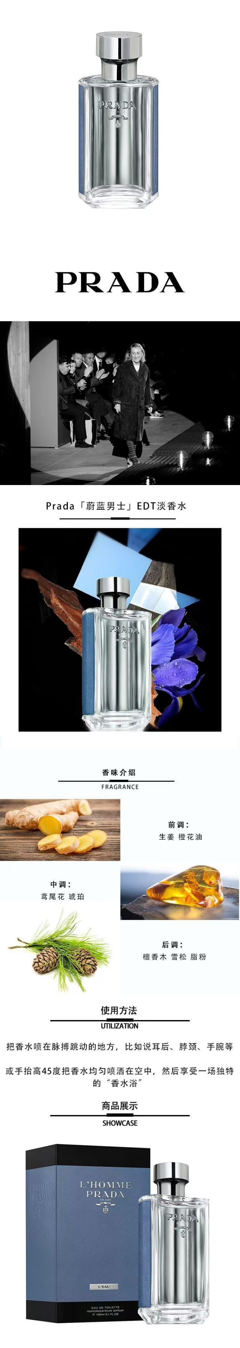 PRADA普拉達男士香水湛藍紳士生日禮物送男友